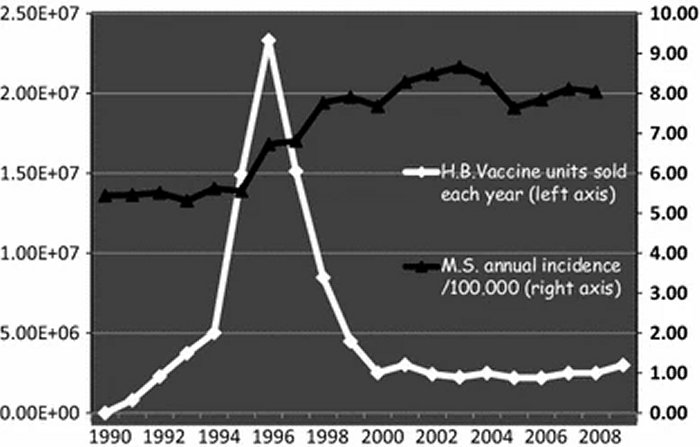 About half a century ago, H. Miller first raised the idea that vaccines can cause Multiple Sclerosis (MS) (1). Vaccination for Hepatitis B is of particular concern as it was massively introduced in France in a relatively short period of time. In 1992, the World Health Organization recommended universal Hepatitis vaccination for infants to banish the Hepatitis virus from the world. The WHO also recommended vaccination of teenagers in countries with low infection rates.